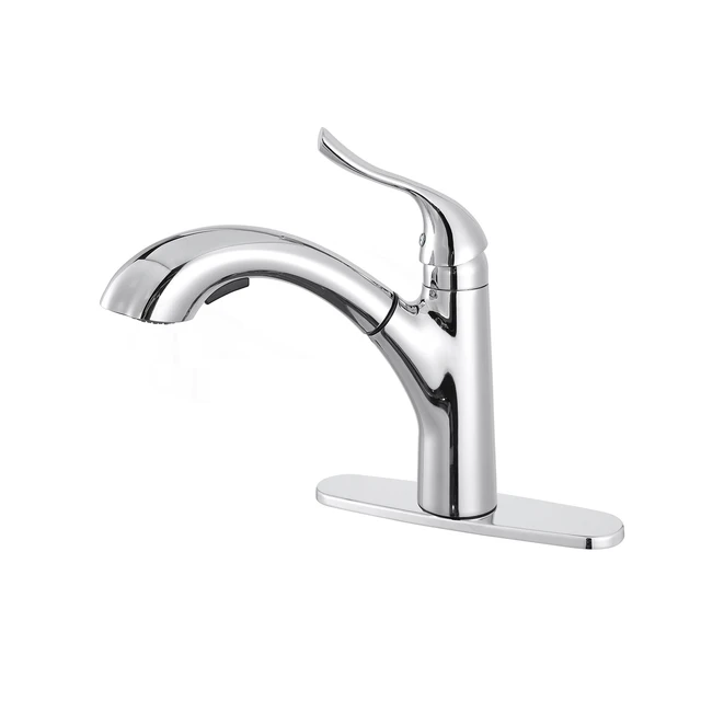 Modern Chrome Kitchen Sink Faucet Single Handle Hole Commercial Travel Trailer RV Kitchen Faucet with Pull Out Sprayer