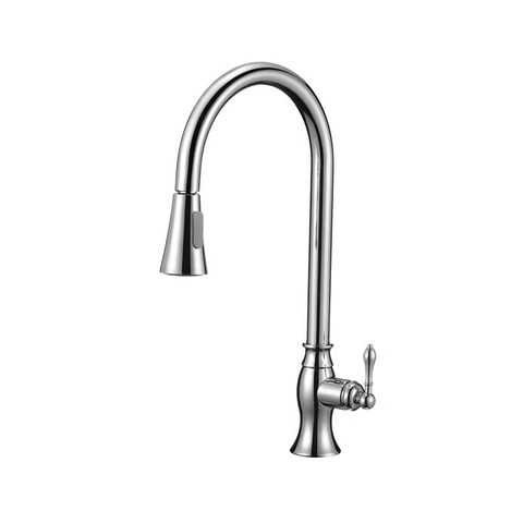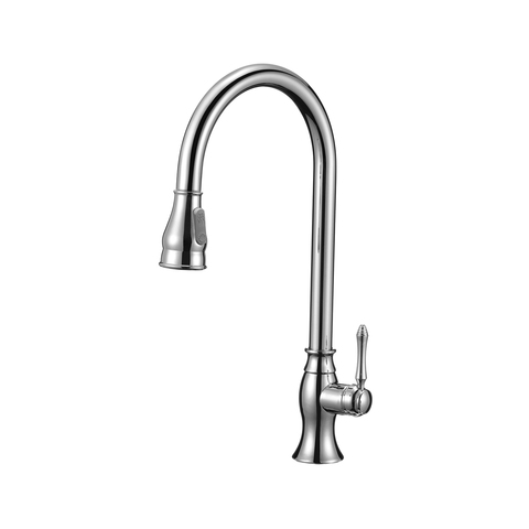 Robinet d'évier de cuisine chromé avec pulvérisateur extractible robinet de cuisine en laiton à poignée unique 1 trou extractible