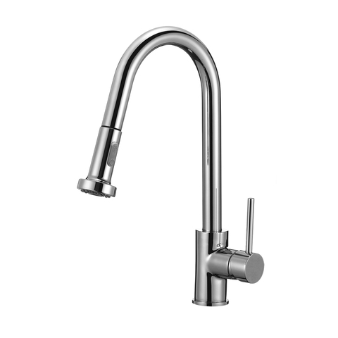 Robinets de cuisine à poignée unique, en laiton chromé à arc élevé Commercial et moderne avec pulvérisateur extractible pour éviers à linge de camping-car